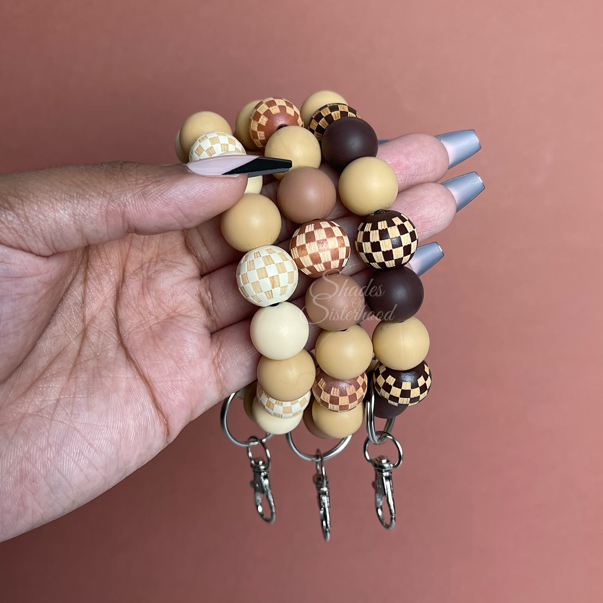 100% non-toxic, food grade silicone beads. Checkered wood beads.