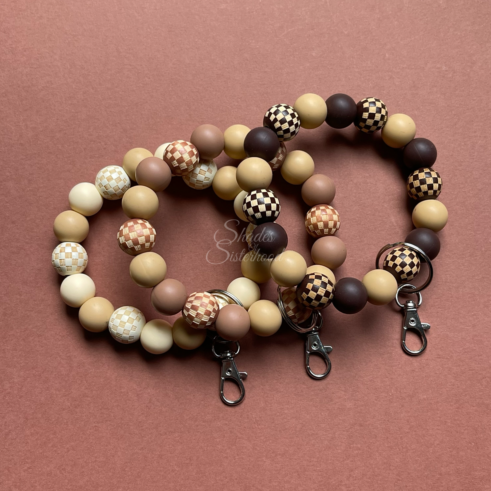 100% non-toxic, food grade silicone beads. Checkered wood beads.