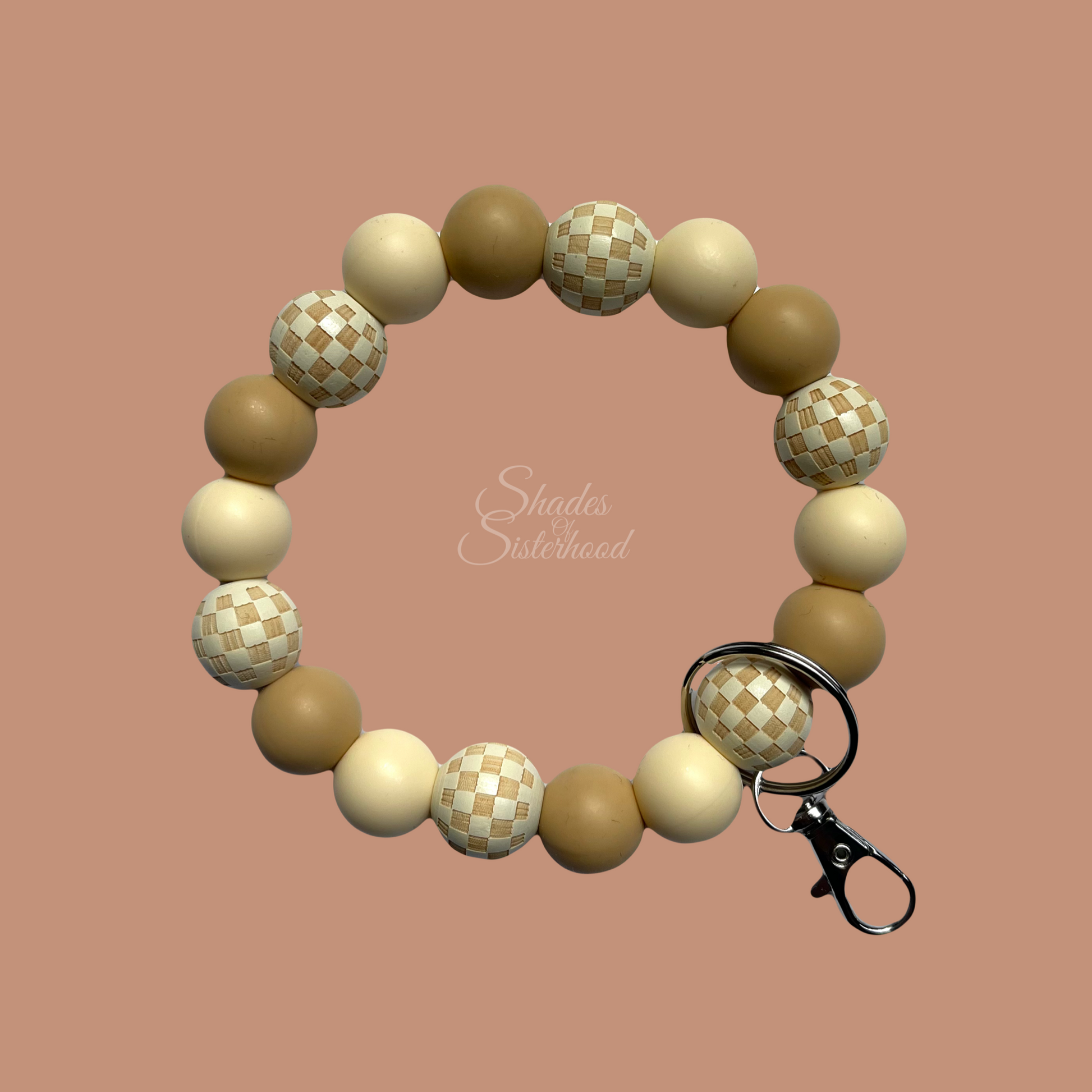 100% non-toxic, food grade silicone beads. Checkered wood beads.