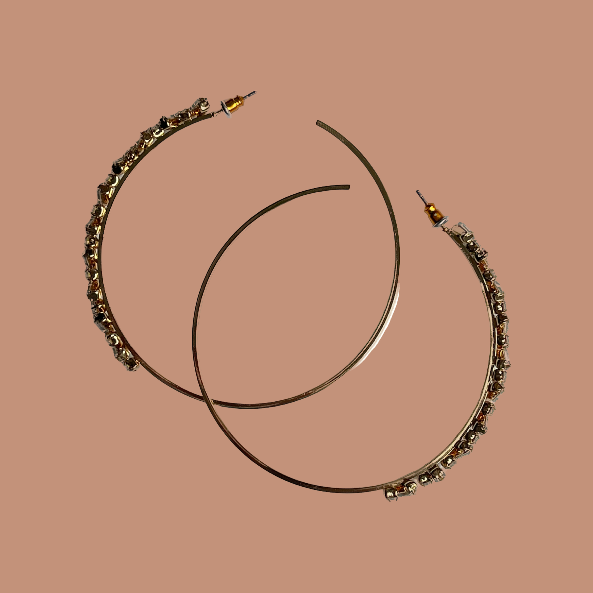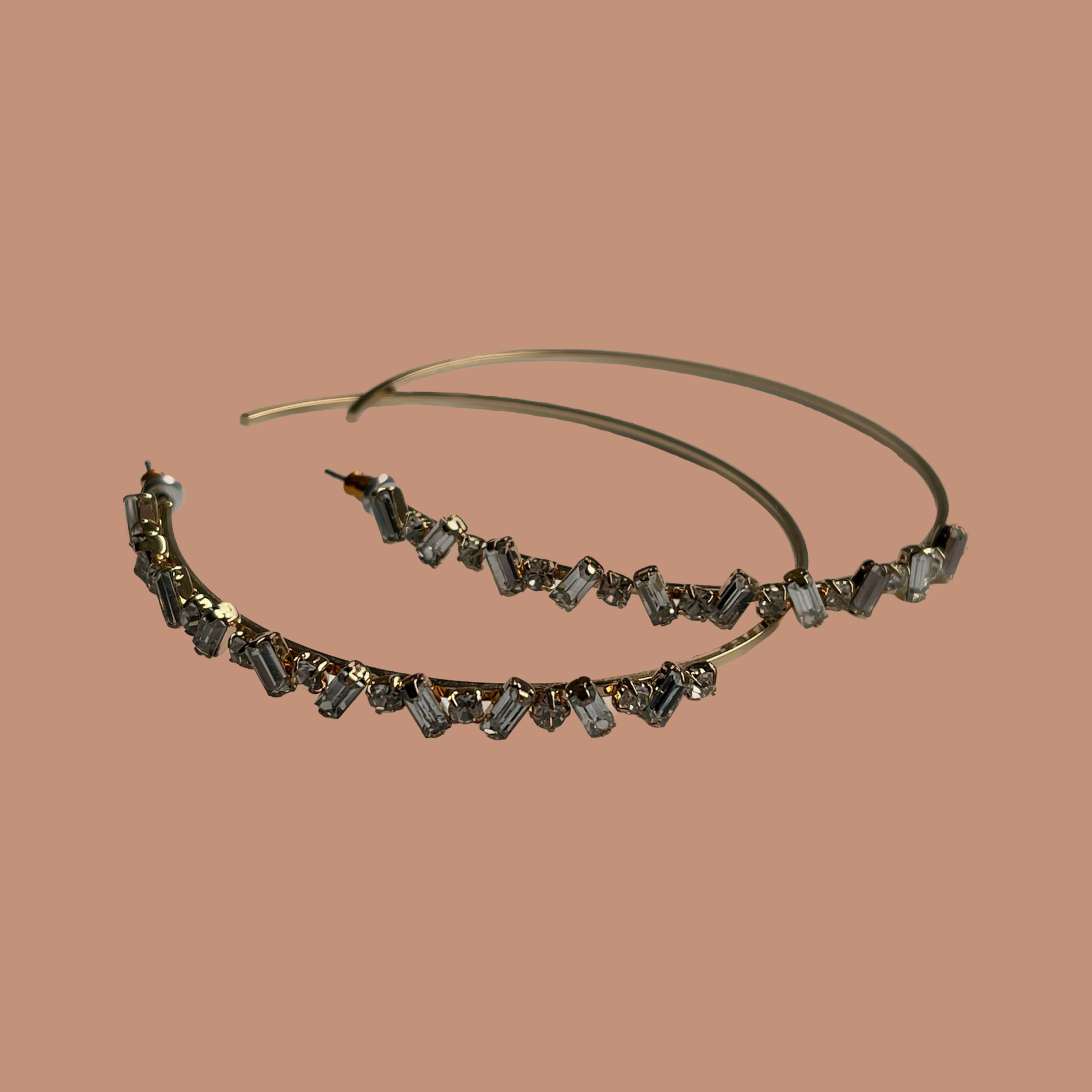 *Premium Collection* Show up and show out in these premium 2.5 inch high-polish finish, thin hoops with rhinestone embellishments.