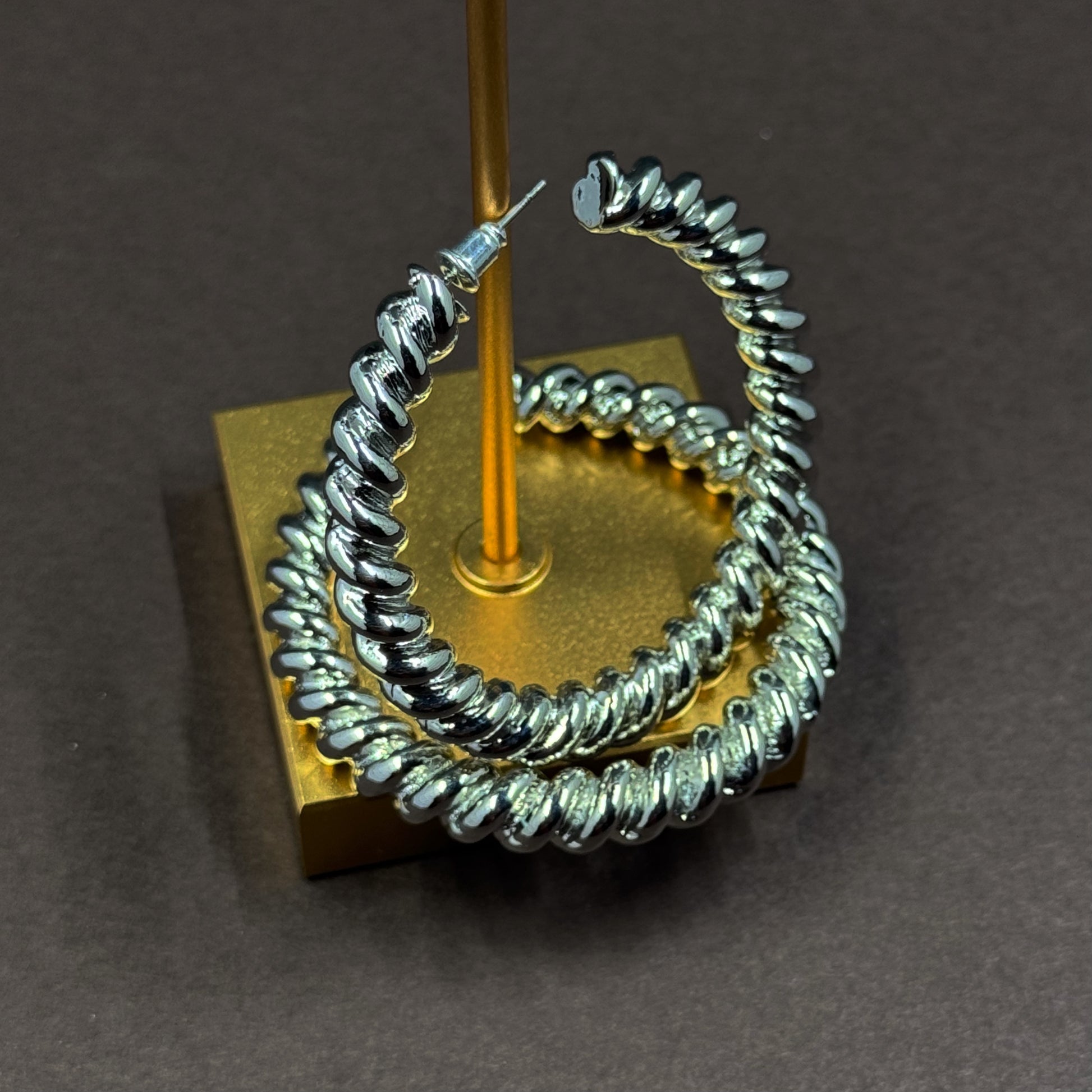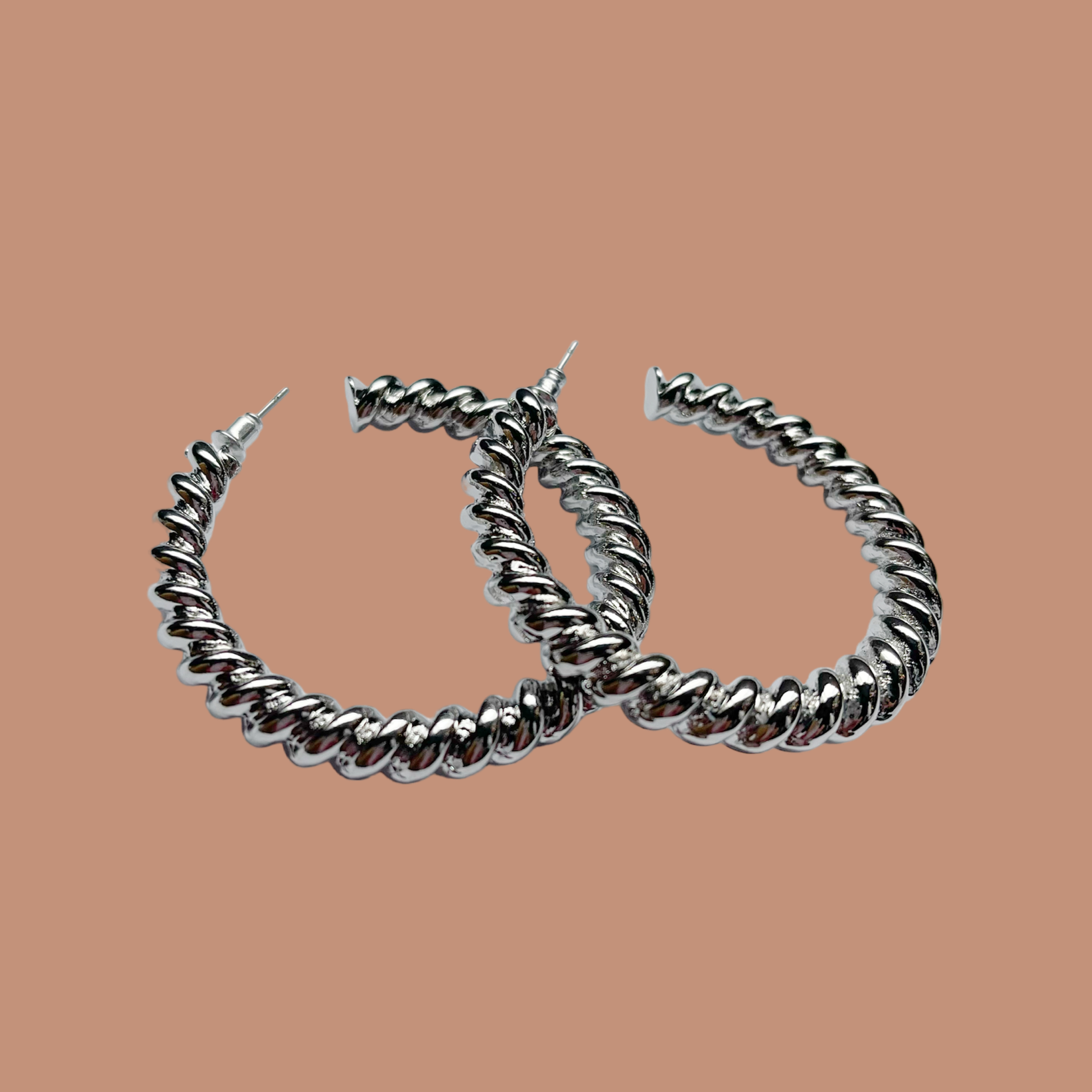 *Premium Collection* Show up and show out in these premium 2 inch high-polish finish, corded, twisted silver hoops.