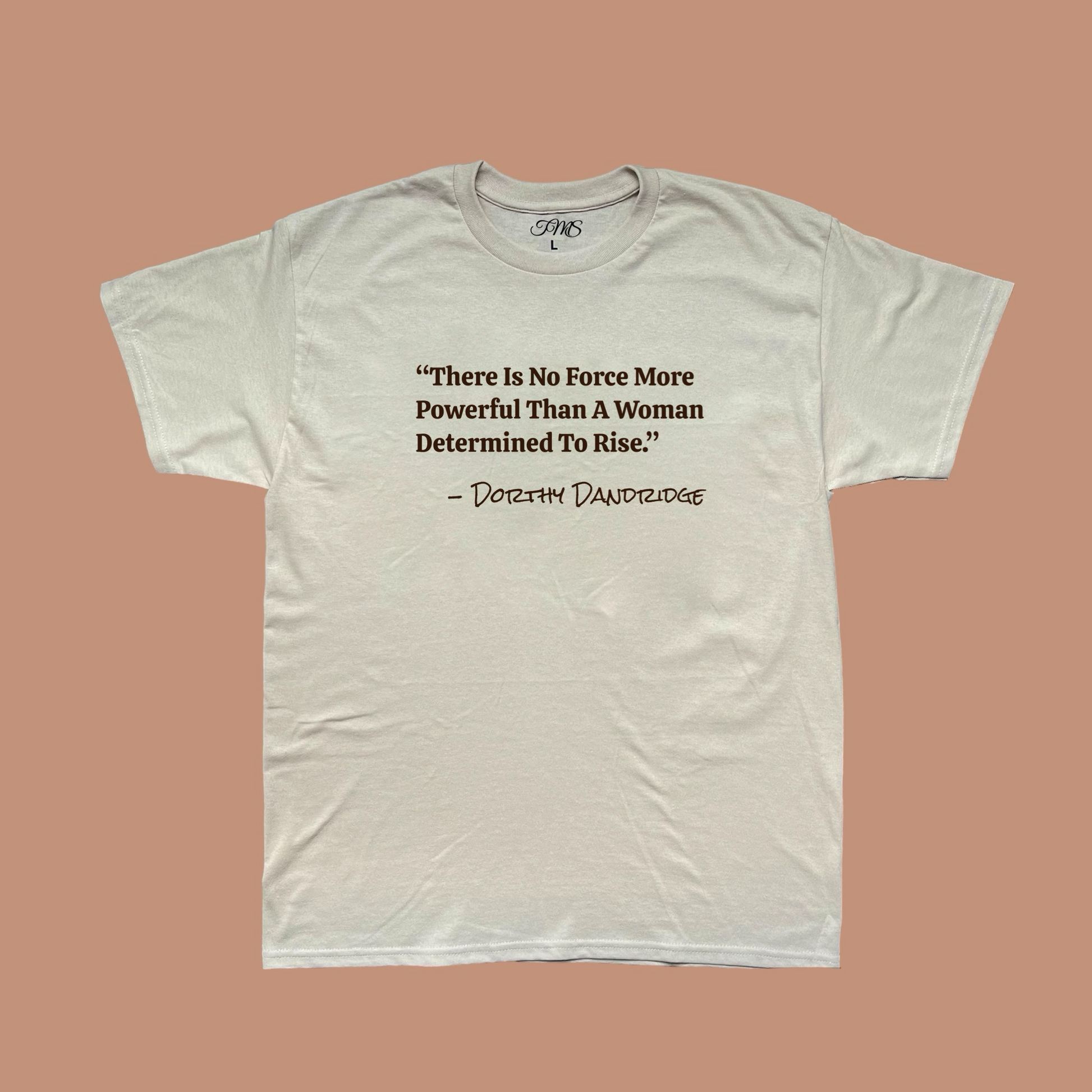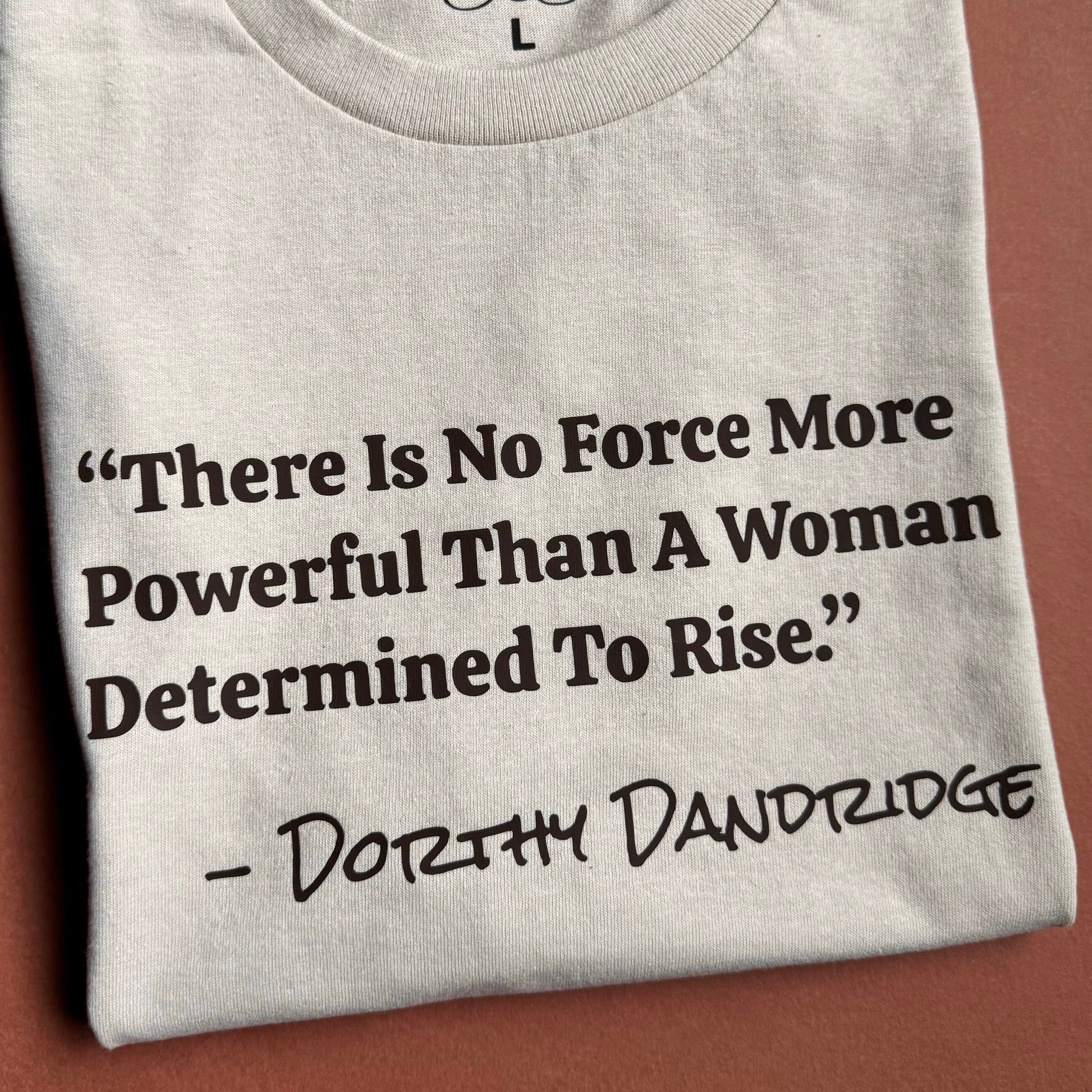 An iconic quote by Dorthy Dandridge in chocolate brown, on a comfortable sand (unisex) t-shirt. - Unisex fit, we suggest sizing down for a tighter fit.