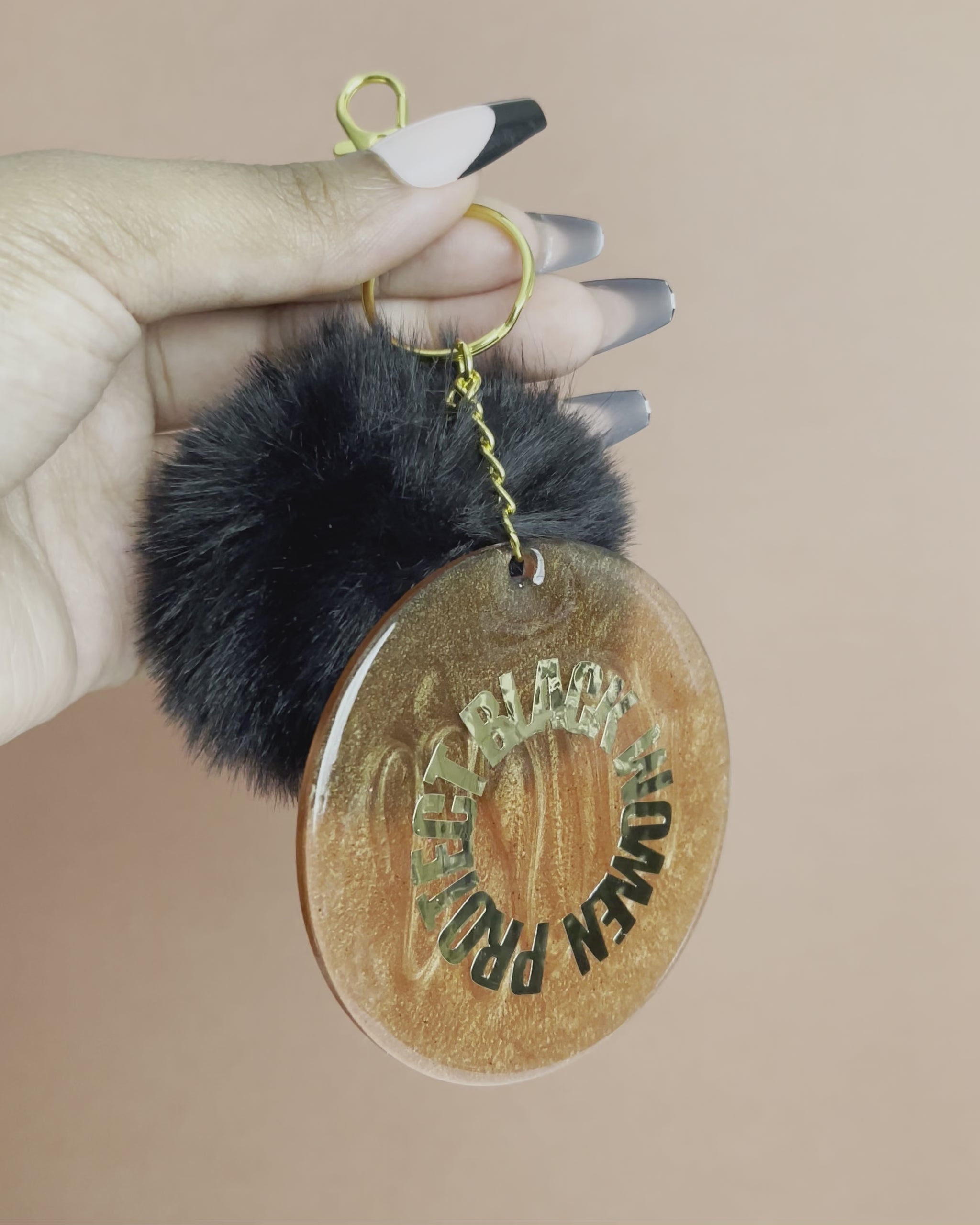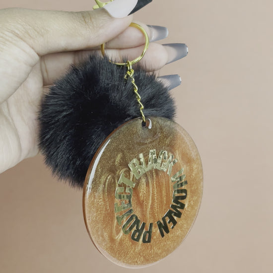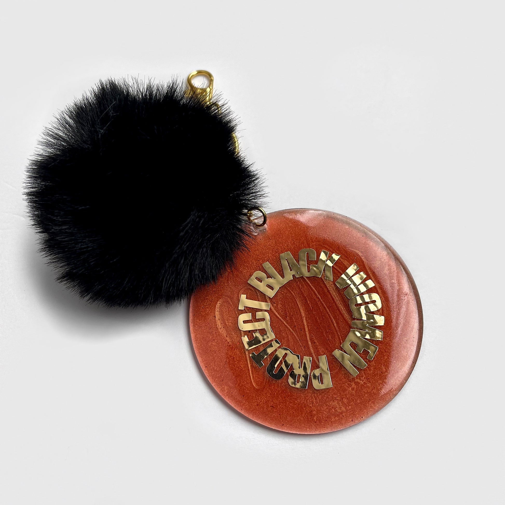 An exclusive “Protect Black Women” keychain with a black pom pom.