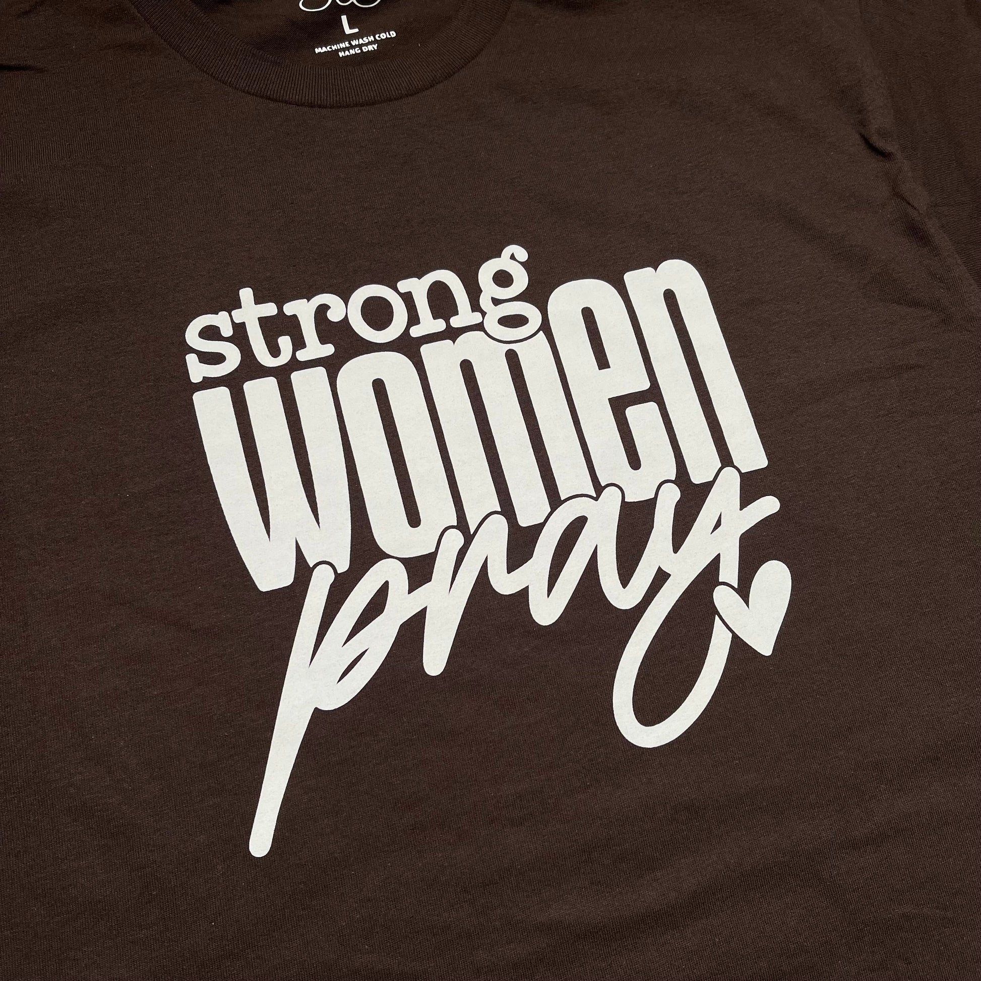 Our ‘Strong Women Pray’ oversized dark chocolate brown comfortable (unisex) t-shirt. - Unisex fit, we suggest sizing down for a tighter fit.