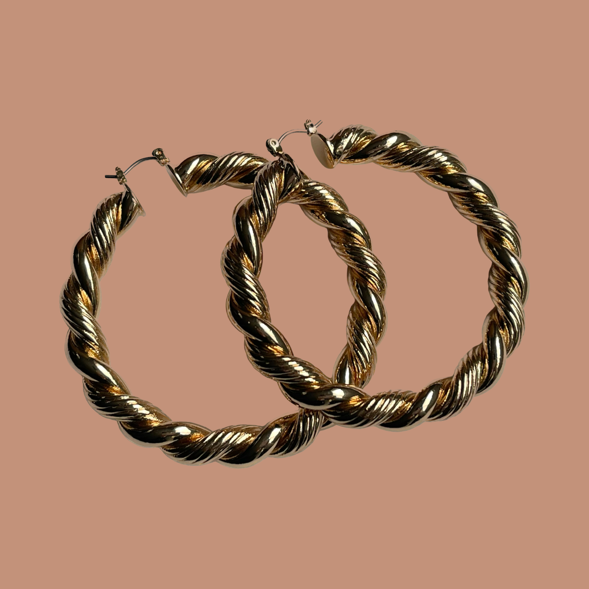 *Premium Collection* Show up and show out in these premium 2.25 inch high-polish finish, chunky, twisted construction hoops.