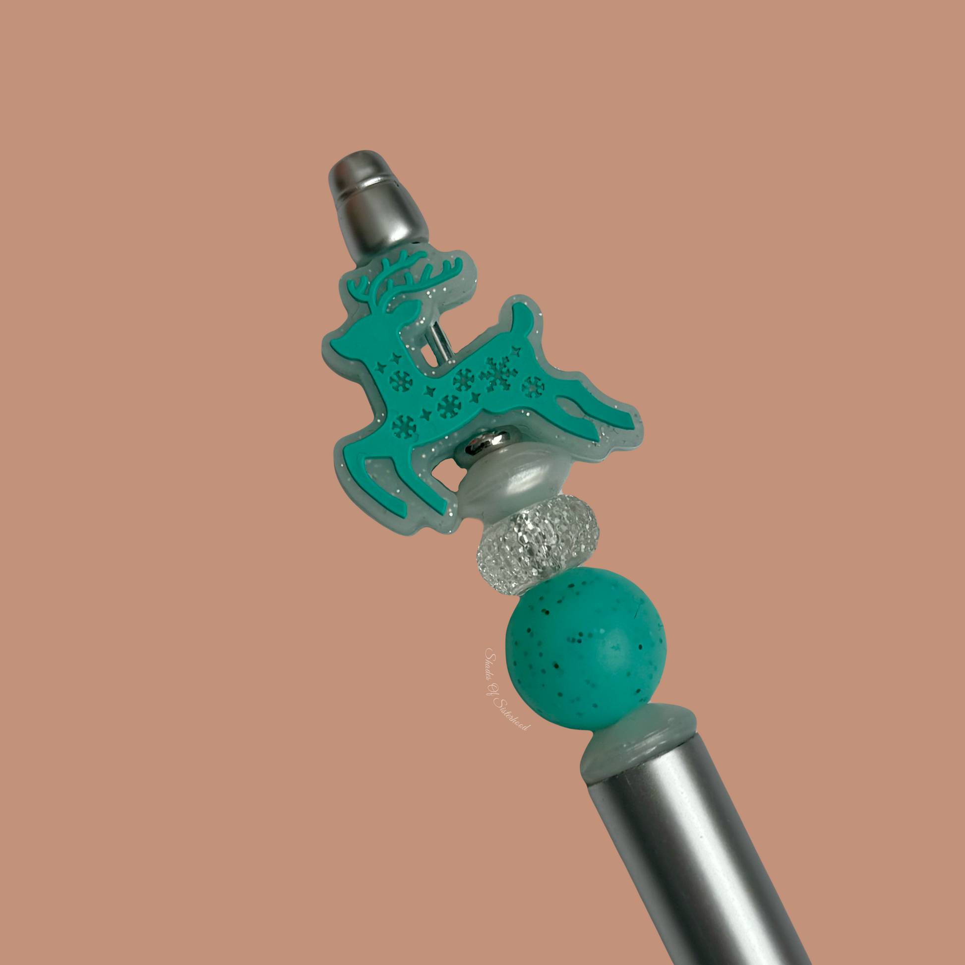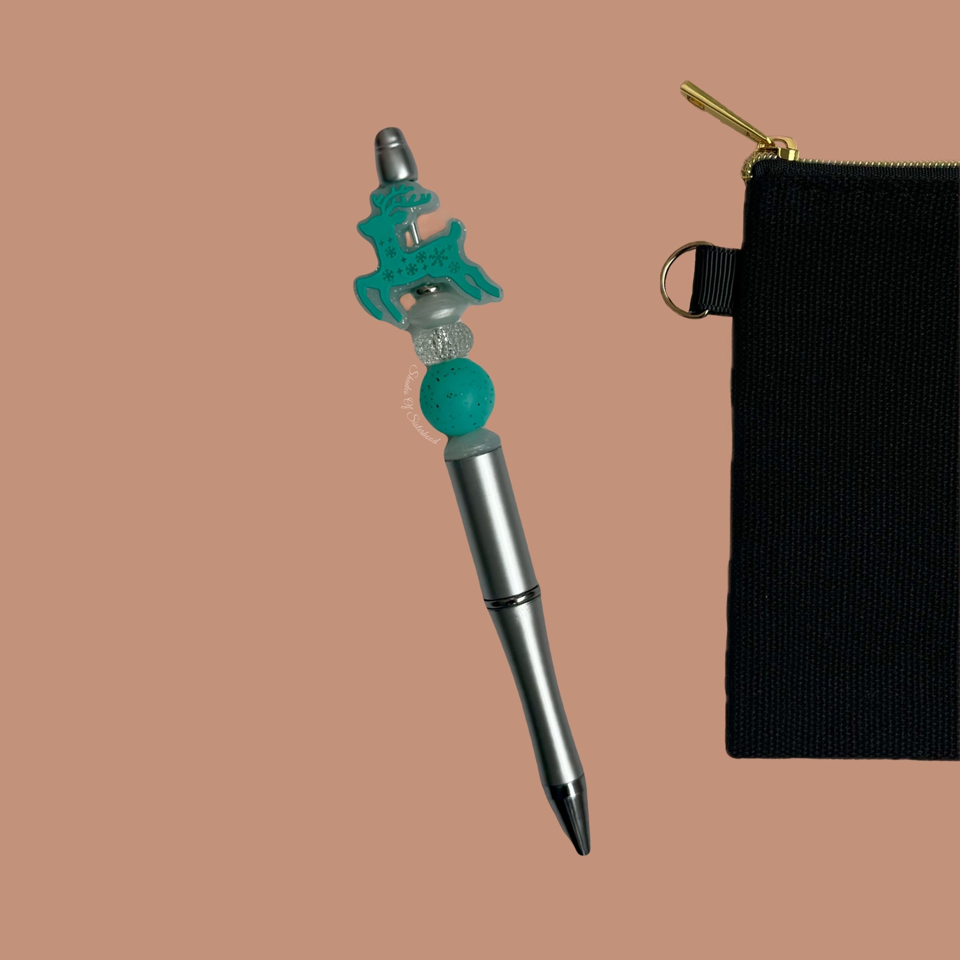 A unique beaded pen made with silicone beads. This pen writes in black ink and includes an extra ink insert.
